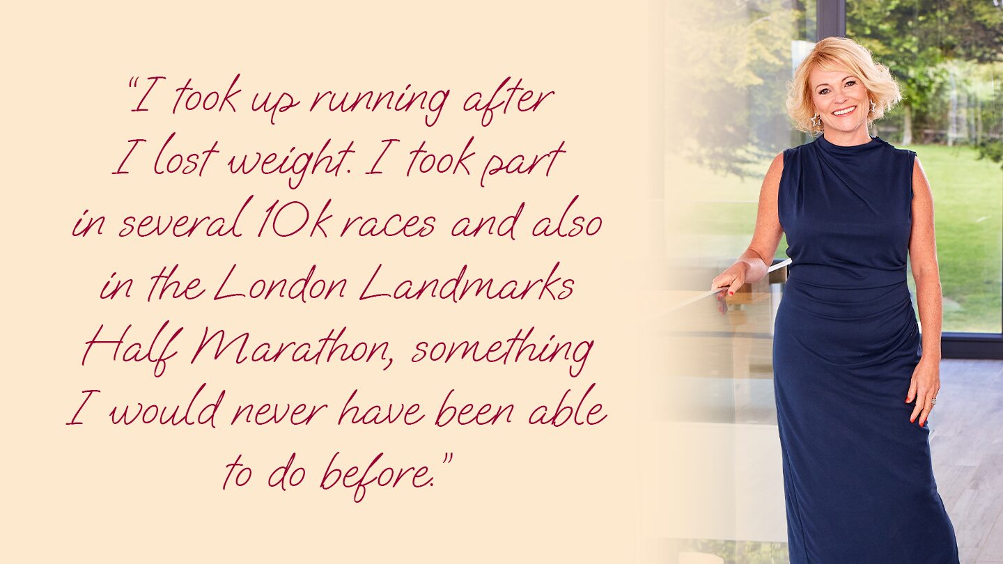 And I took up running too, participating in several 10k races and also in the London Landmarks Half Marathon – something I would never have been able to do before. Now I stay active by taking my dog on long walks.